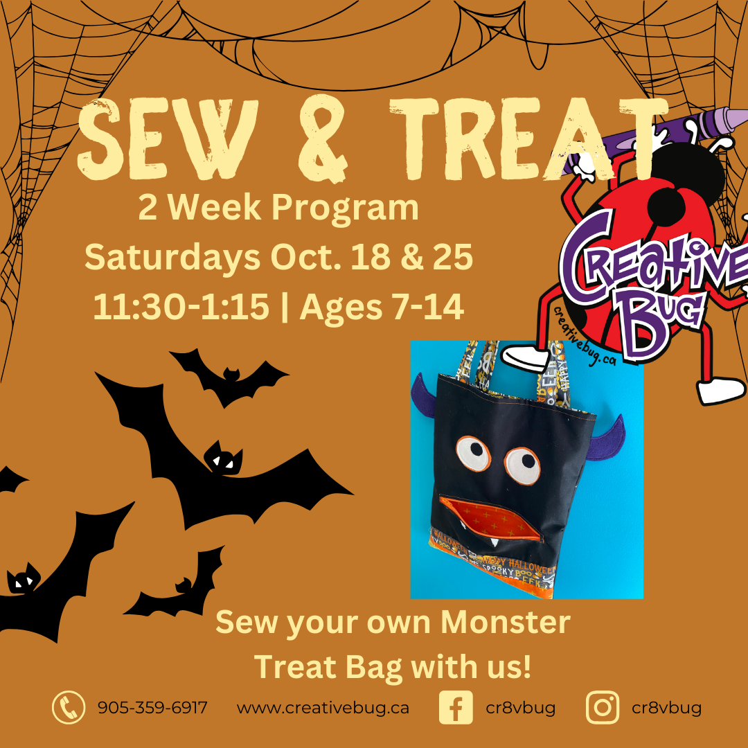 Sew your own Monster Treat Bag with us! Artists will have the opportunity to put some personal touches on their very own Monster Tote Bag while learning some basic sewing skills including zipper installation.